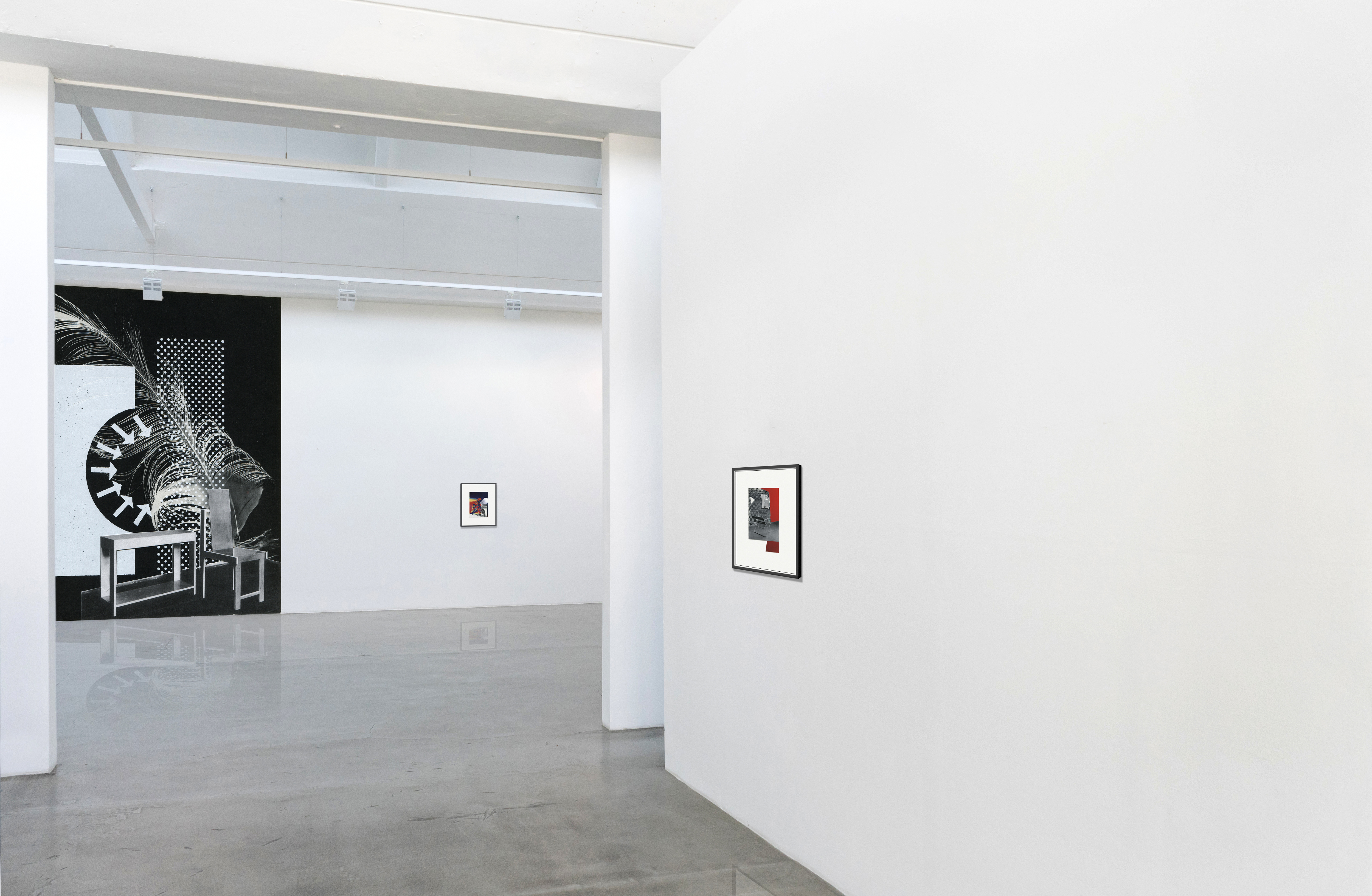 In her installations and collages, Barbara Breitenfellner (Kufstein, 1969) relates to the art world and spaces as they appear in dreams and translates them into visual material. She works around distortion and metamorphosis as we experience them in our nocturnal activities. For this exhibition she composed new collages inspired by Lucier using a modern chair, an anechoic chamber, a distant human presence.